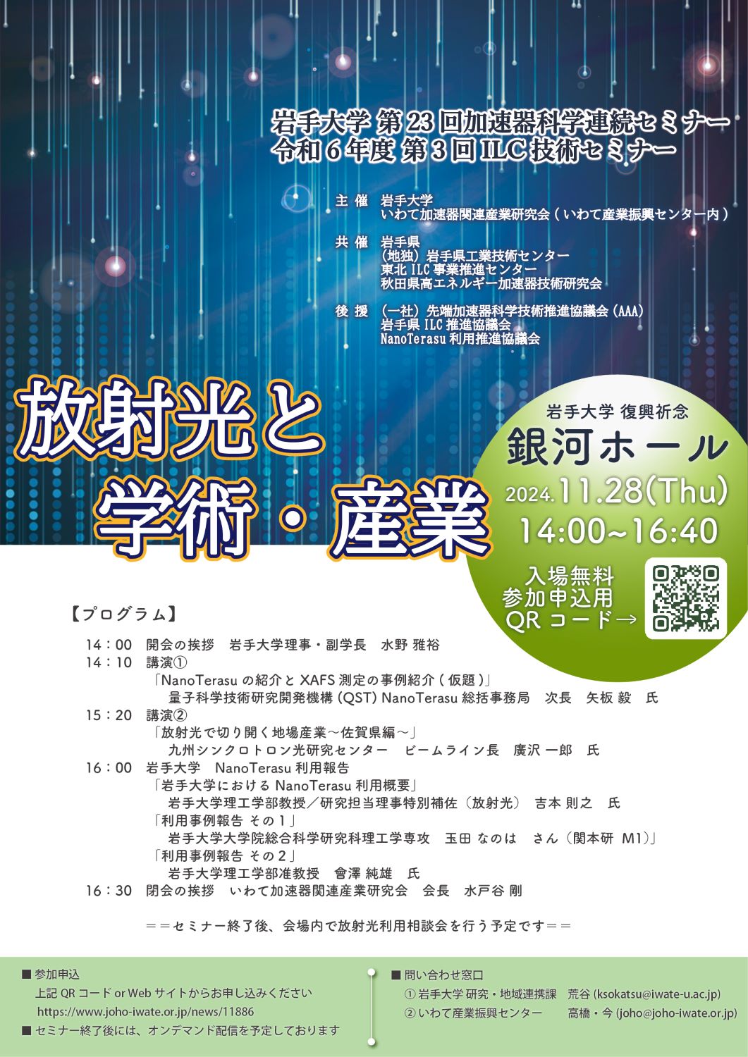 第3回ILC技術セミナー(岩手大学 第23回加速器科学連続セミナー)「放射光と学術・産業」