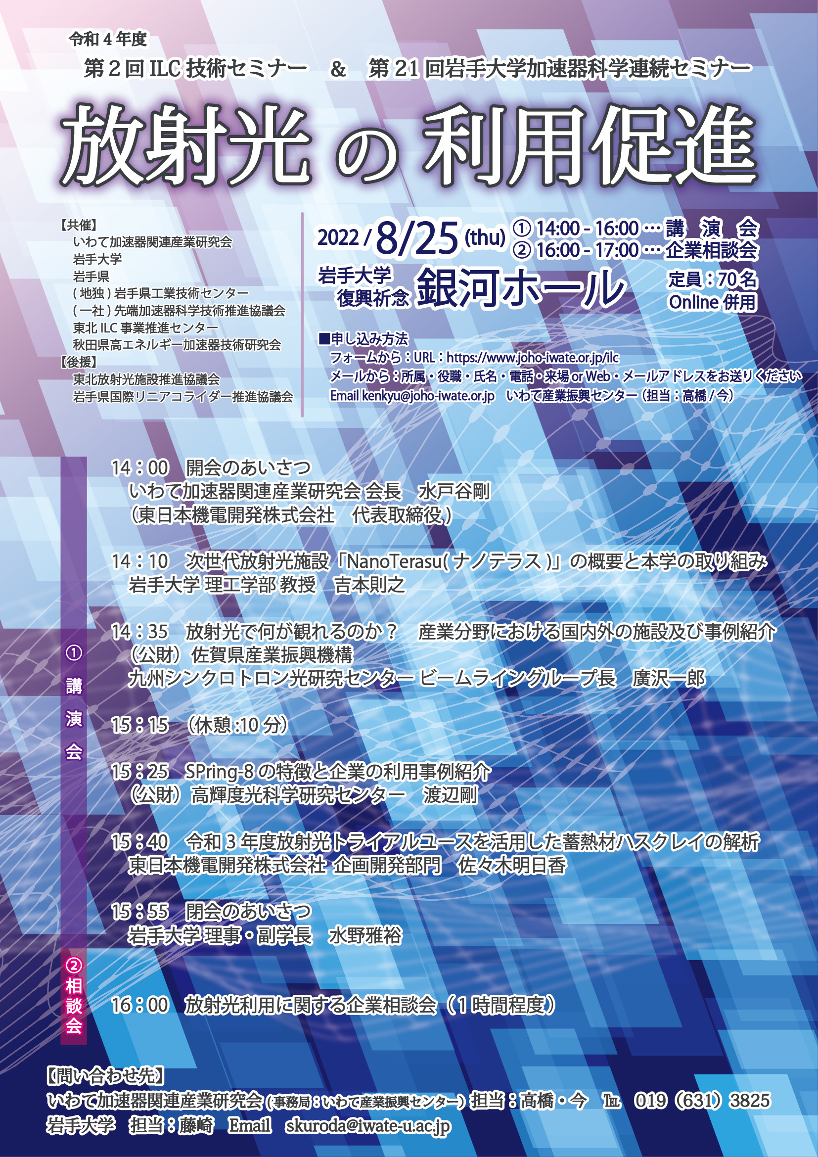 ・問い合わせ先…いわて加速器関連産業研究会事務局(いわて産業振興センター産学連携室)